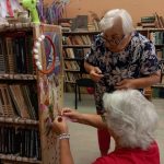 - Leimaņi. Ina Sēle pie pagasta māju kartes “Rūķīšos”‘.